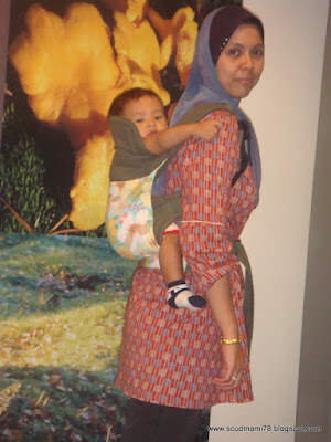 side view -- perfect for him. Tapi aku tak prefer carry dia dalam J ni kalau nak jalan lama.. sebab dia mmg CONFIRMED akan lena.. kalau lena kena pakai kan hood... tak best, kadang2 tak secure sangat, nnt kepala dia teleng kiri teleng kanan plak.. ciannn...